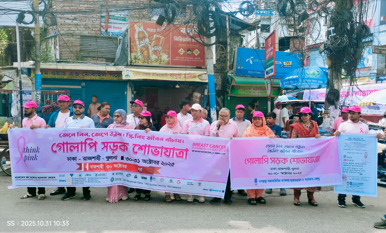 অক্টোবর মাস বিশ্বব্যাপী ‘স্তন ক্যান্সার সচেতনতা মাস’ হিসেবে পালিত হয়। এরই অংশ হিসেবে বাংলাদেশ স্তন ক্যান্সার সচেতনতা ফোরামের উদ্যোগে ওয়ার্ল্ড ক্যান্সার সোসাইটি বাংলাদেশসহ ৫৩টি স্বেচ্ছাসেবী সংগঠনের সমন্বয়ে দেশের সবচেয়ে বড় সচেতনতামূলক কর্মসূচি ‘গোলাপি সড়ক শোভাযাত্রা’ অনুষ্ঠিত হয়েছে।
