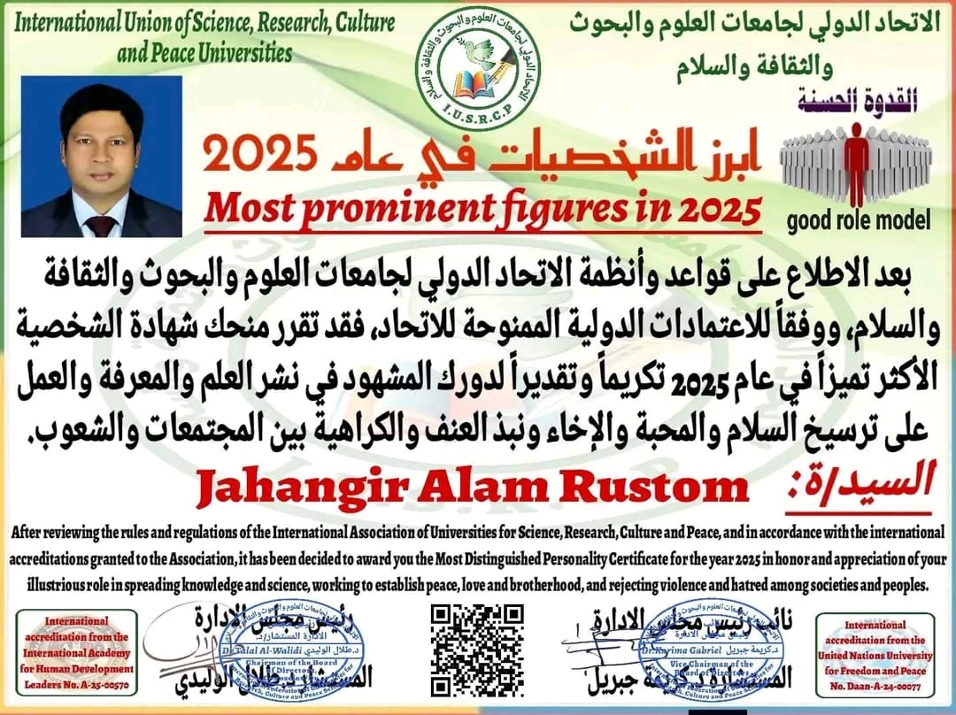 ২০২৫ সালের “আন্তর্জাতিক বিজ্ঞান, গবেষণা, সংস্কৃতি ও শান্তি বিশ্ববিদ্যালয় ইউনিয়নের প্রশাসক এবং বিচক্ষণ জুরি বোর্ডের তত্ত্বাবধানে এই বছরের সেরাদের তালিকায় নাম ঘোষণা করা হয়। বিজয়ী এই বিশ্বসেরা কবি বলেন – ...বিস্তারিত পড়ুন